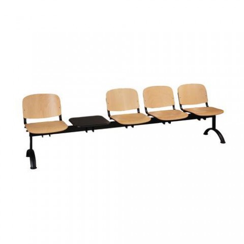 Čtyřmístná dřevěná lavice ISO v dekoru přírodního buku je vhodná do čekáren, hal i jiných veřejných prostor. Lakovaný sedák i opěrák je vyroben z bukové překližky. Součástí lavice je odkládací stolek z lamina. Stabilitu dřevěné lavice zaručuje černý kovový rám. Lavice do čekáren lze doplnit o područky. barva: buk barva konstrukce: černá materiál: překližka materiál konstrukce: kov nosnost: 4 x 100 kg počet míst: 4 rozměry stolku v x š x h: 2 x 45 x 45 cm rozměry sedáku š x h: 46 x 42 cm výška sedáku: 47 cm výška opěradla: 33 cm hmotnost: 39,8 kg dodáváno částečně zkompletováno včetně montážního materiáluLavice ISO black, čtyřmístná se stolkem
