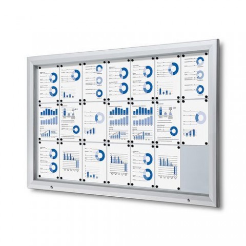 Magnetické vitríny se stříbrným hliníkovým rámem vhodné do exteriéru. Lakovaná zadní stěna je popisovatelná speciálním fixem. Vitrína je uzamykatelná. Bezpečnostní ESG sklo o šířce 4 mm.Magnetické vitríny Dom, jednokřídlé
