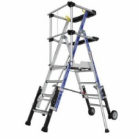 Nastavitelné platformy Sherpascopic. Pevné 4stranné zábradlí s ochrannými lištami proti pádu s poloautomatickým zavíráním. Protiskluzové schůdky 80 mm (pevná plocha) a 60 mm (teleskopická plocha). Odnímatelný přihrádkový držák nářadí - nosnost 25 kg, s integrovanými háčky (max. 10 kg). Vysoce komfortní 590 x 400 mm protiskluzová platforma ze dřeva. Výsuvné stabilizátory s milimetrovým nastavením. Teleskopické roviny umožňující posun úrovní. Intuitivní a bezpečný systém nastavení výšky, nastavení každých 23 cm (po krocích). Součástí jsou dvě kola o průměru 175 mm.Nastavitelné hliníkové plošiny Sherpascopic Tubesca-Comabi