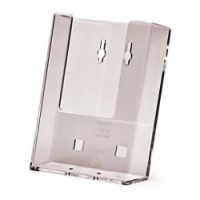 Plexi držáky na letáky, brožury, propagační materiály apod. k upevnění na stěnu. S pomocí stolního adaptéru lze zásobníky postavit na stůl. Orientované na výšku. Zásobník je standardně dodáván bez potisku.Nástěnné zásobníky na letáky JD10, 1 kapsa na výšku