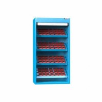 NC skříně jsou opatřeny dvojitými stěnami s perforací pro zavěšení polic, nosičů, nástrojových rámů a zásuvek. V případě vybavení skříne zásuvkami je standardně, z důvodu bezpečnosti (nebezpečí převrácení), dodávána blokace proti vysunutí více zásuvek. Korpus skříně se uzavírá hliníkovou roletou světle šedé barvy RAL 7035 s rozvorovým zámkem. Standardní výbavou je systém identifikace otvorů a popisový štítek s funkcí chytrý nábytek. Do skříní je možné zavěšovat zásuvky s půdorysem ZC (54x27).NC skříně s roletou 54x27D s vybavením, var. 1