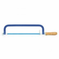 Oblouková pilka na železo s dřevěnou rukojetí. Řezný plátek je pro snadnou výměnu zafixován křídlovou maticí.Oblouková pilka na železo