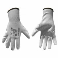 Ochranné rukavice v bílé barvě v praktické velikostiOchranné rukavice bílé z pletené bavlny, polomáčené v PU, GEKO