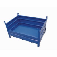 Kovová ohradová paleta (Gitterbox) s vyztuženou konstrukcí zaručující vysokou pevnost a odolnost proti poškození. Podélná sklopná bočnice slouží pro snadnější manipulaci s uloženým materiálem. Lze snadno stohovat maximálně po třech kusech.Ohradová paleta s nižší bočnicí, plná