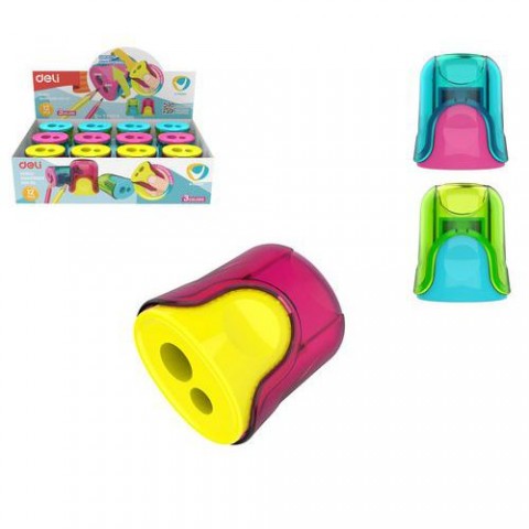 Velikost otvoru 8 a 12 mm. Snadné strouhání. Tuha se nezalomí. Zásobník na odřezky. Barva modrá, žlutá.Ořezávátko se zásobníkem DELI U-TOUCH dvouděrové, mix, 12ks