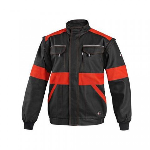Černá pánská montérková blůza s oranžovými doplňky. Náprsní a přední kapsy schovají telefon, metr a další drobné předměty potřebné k práci. Praktické nošení zajišťuje stahovací guma v pase a rukávy zakončené pružnou manžetou. Odepnutím rukávů lze blůzu během chvilky proměnit ve vestu. Kryté zapínání na zip a zapínání u krku.Pánská montérková blůza CXS, černá/oranžová