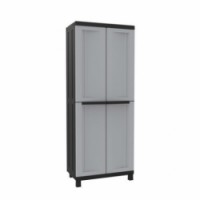 Ekonomická varianta plastové skříně se třemi výškově nastavitelnými policemi z plastu odolného vůči vlhkosti, vysokým teplotám a chemicky agresivnímu prostředí. Je jednoduše omyvatelná běžnými čisticími prostředky. rozměry v x š x h: 170 x 68 x 39 cm materiál: plast nosnost na polici: 20 kg počet polic: 3 ks barva: černá barva dveří: šedá uzamykání visacím zámkem (není součástí dodávky), dodávka v demontovaném stavuPlastová skříň, 170 x 68 x 39 cm