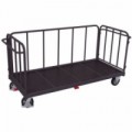 Ocelový plošinový vozík se dvěma trubkovými stěnami o výšce 800 mm s madly. Voděodolná lepená plocha z protiskluzové překližky. Nakládací výška 305 mm. Šedá kola z termoplastické pryže nezanechávající stopy na plastovém ráfku s přesnými kuličkovými ložisky nebo elastická celopryžová kola na litém hliníkovém ráfku s přesnými kuličkovými ložisky.Plošinové vozíky s protiskluzovým povrchem, 2 stěny