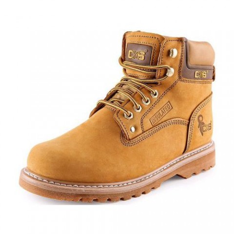 Kožená pracovní obuv z nubukové kůže s protiskluzovou, antistatickou a olejivzdornou podešví.Pracovní kožené kotníkové boty CXS Road, světle hnědé