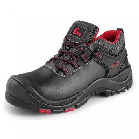 Kožené pracovní polobotky bez kovových prvků s plastovou špicí a kevlarovou stélkou. Boty jsou odolné vůči teplu do 300 °C a jsou opatřeny antistatickou, protiskluzovou a olejivzdornou podešví. Materiál svršku z lícové kůže, textilní podšívka a PU-gumová podešev. Splňují normu EN ISO 20345:2011 S3 HRO SRC.Pracovní kožené polobotky CXS Rock, černé