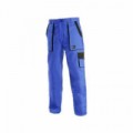 Modré dámské montérky do pasu s černými doplňky. Velké přední a menší boční kapsy schovají telefon, metr a další drobné předměty potřebné k práci. Pohodlné nošení zajišťuje pevný pas se stahovací gumou a našitá poutka umožňují použít opasek. Zdvojená vyztužená partie kolen pomůže při častém klečení.Dámské montérkové kalhoty CXS, modré/černé