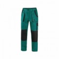 Zelené pánské montérky do pasu s černými doplňky. Velké přední a menší boční kapsy schovají telefon, metr a další drobné předměty potřebné k práci. Pohodlné nošení zajišťuje pevný pas se stahovací gumou a našitá poutka umožňují použít opasek. Zdvojená vyztužená partie kolen pomůže při častém klečení.Pánské montérkové kalhoty CXS, zelené/černé