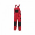 Červené pánské montérky s laclem s černými doplňky. Náprsní kapsa na zip, velké přední a menší boční kapsy schovají telefon, metr a další drobné předměty potřebné k práci. Zdvojená vyztužená partie kolen pomůže při častém klečení. Kšandy do gumy se zapínáním na plastovou přezku.Pánské montérkové kalhoty CXS s laclem, červené/černé