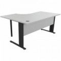 Psací stoly Manutan Expert s deskou z melaminového panelu o tloušťce 25 mm a s kovovým podnožím. Pravé či levé provedení stolu. Antireflexní úprava proti poškrábání. Deska stolu má otvor o průměru 80 mm pro vedení kabelů.Kancelářské stoly Manutan Expert, 72 x 160 - 180 x 110 cm, pravé/levé provedení, světle šedá