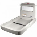 Antibakteriální ochrana. TUV certifikace Nastavitelný bezpečnostní pás. Přebalovací pult bez ostrých hran a rohů. Háčky na obou stranách pro snadný přístup k přebalovacím taškám.Skládací přebalovací pult Rubbermaid