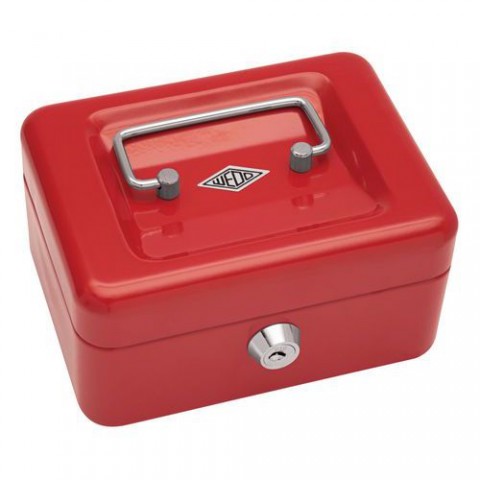 Vyrobena z hrubé svařované oceli. Pevný zámek, ke kterému jsou dodávány 2 klíče. Vyjímatelný plastový zásobník na mince.Přenosná uzamykatelná pokladna