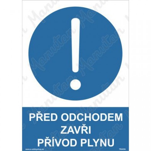 Značky, tabulky a samolepky "Před odchodem zavři přívod plynu" tiskneme na velmi kvalitním materiálu, barvami s vysokou odolností proti otěru a UV záření. Tak, aby provedení značení bylo plně v souladu s Nařízením vlády č. 375/2017 Sb., ČSN ISO 3864 a ČSN ISO 3864-1. Bezpečnostní tabulky a samolepící fólie nařizují vypnutí přívodu plynu před odchodem pracovníka. Tyto tabulky pomáhají zvyšovat bezpečnost práce.Příkazové tabulky - Před odchodem zavři přívod plynu
