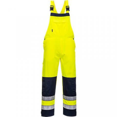 Laclové kalhoty s reflexními prvky pro vysokou viditelnost při práci. Celkem 7 kapes pro ukládání věcí, kolenní kapsy pro ochranné vložky. Nastavitelný spodní lem na suchý zip, elastická zadní část. Tkanina odráží 98 % UV záření (UPF 50+). Vyrobené ze 65% polyesteru a 35% bavlny 245 g. Splňují normy EN ISO 20471 Třída 2.Reflexní kalhoty Girona Hi-Vis s laclem, modré/žluté