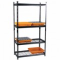 Kovový regál se čtyřmi drátěnými policemi, vybavený záchytnými vanami pro skladování kapalin. 4 retenční vany o objemu 10 l vyrobené z polypropylenu, odolné vůči agresivním kapalinám, kyselinám a chemikáliím (nejsou vhodné pro hořlavé kapaliny). Maximální nosnost retenční vany je 35 kg při rovnoměrném zatížení. Dvě záchytné vany jsou navíc vybavené roštem. Kovová konstrukce ošetřená práškovou šedou barvou.Drátěný regál se záchytnými vanami Manutan Expert, 1 674 x 914 x 457 mm