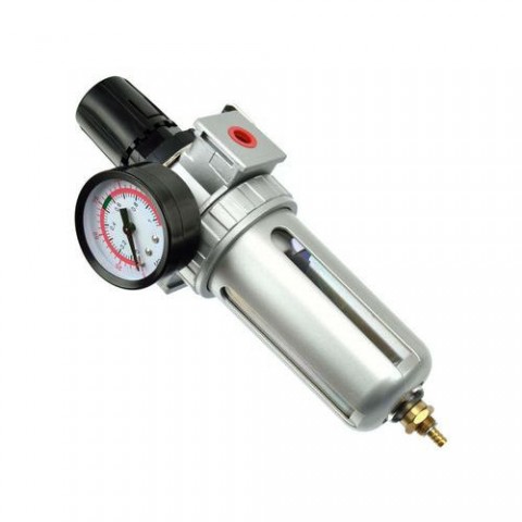 Slouží k udržení konstantního provozního tlaku nezbytného pro řádný provoz, mimo jiné stříkací pistole, rázové utahováky, brusky atd. Vzduchový filtr odstraňuje vlhkost, filtruje pevné částice a kondenzaci spojenou se stlačeným vzduchem. Výkonné nástroje pro mazací oleje během práce. Celek udržuje pneumatické nářadí čisté, suché a zvyšuje tak jejich životnost. Ideální pro nástroje, které vyžadují mazání Zámek knoflíku pro nastavení průtoku vzduchu Vypouštěcí ventil 40 mikronová filtrační patrona Polykarbonátová nádrž Maximální pracovní tlak: 1MPaPrůměr závitu vzduchového připojení: 3/8Maximální pracovní teplota: 60°CMateriál nádrže: polykarbonátDoporučený olej: ISO - VG32Rozsah regulace tlaku: 0,5 - 10 barMaximální průtok: při tlaku 6bar - 1000 l/minKapacita: 90cm3Regulátor tlaku s filtrem a manometrem, max. prac. tlak 10bar GEKO