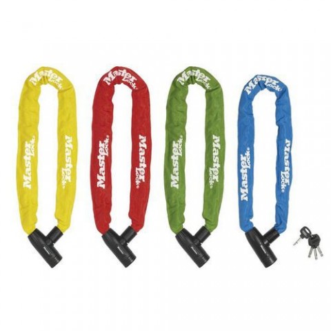 Zpevněný ocelový řetěz s integrovaným zámkem na klíč. Řetěz je dlouhý 900 mm, obsahuje ocelové spojky o průměru 8 mm, které odolávají přeřezání. Nylonový kryt řetězu zabraňuje poškrábání. Zámek obsahuje integrovaný cylindr s válcovým kotoučem pro vysoký stupeň zabezpečení. Bezpečnostní třída Master Lock™ 8.Řetězový zámek na kolo Master Lock 8mm, mix barev 6ks