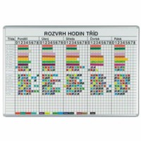 Magnetická tabule s rastrem pro rozvrh hodin až pro 26 tříd (rozsah 0 – 8 hodin). Povrch není popisovatelný fixem. Standardní barva rastru černá. Díky sendvičové konstrukci má tabule vysokou tuhost a odolnost. Tabule je opatřena kvalitním elegantním rámem z eloxovaného hliníkového profilu ve stříbrném odstínu s šedými plastovými rohy. Tloušťka tabule je 22 mm. Součástí balení je kompletní montážní sada pro upevnění na stěnu. Česká výroba.Rozvrhová tabule ekoTAB 26