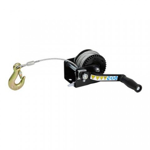 Lanový naviják s ocelovým lanem o délce 10 m a maximální tažnou silou do 360 kg. Naviják slouží pouze k horizontálnímu tažení břemen. Není určen k manipulaci s lidmi. Rukojeť s brzdou.Ruční lanový naviják s automatickou brzdou, do 360 kg