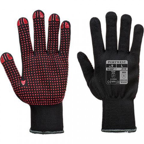 Bezešvá nylonová rukavice s výbornou obratností vhodná pro suchá prostředí. Hustota úpletu 13 s PVC terčíky. CE certifikace Pevný úchop Bezešvá vložka úplet 13 Vyniká v suchých podmínkách 100% prodyšná bezešvá vložka PVC terčíky pro zvýšený úchop ANSI prořez úroveň A1 ANSI oděr úroveň 1Rukavice Polka Dot, černá