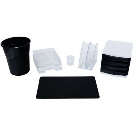 Sada kancelářských doplňků vhodná pro práci na home-office. Pořadače a přihrádky vhodné pro dokumenty o rozměry 24 x 32 cm.Sada kancelářských doplňků Manutan Expert