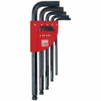 Sada devíti šestihranných klíčů imbus s hlavičkou v L profilu. Kulovitá hlava na delší straně klíče umožňuje práci s imbusovými šrouby i pod úhlem. Klíče jsou zasunuty v plastovém pouzdře ve dvou řadách.Sada klíčů imbus s hlavičkou Usag, 9 ks