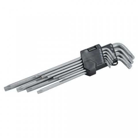 Sada dlouhých klíčů Torx. Obsahuje klíče: T9, T10, T15, T20, T25, T27, T35, T40, T45, T50.Sada klíčů Torx PTS, 10 ks