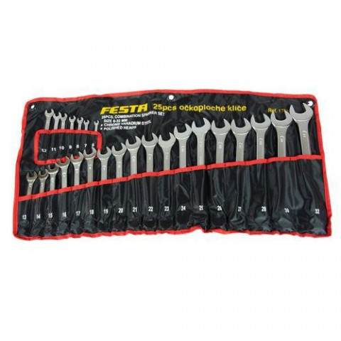 Sada očkoplochých klíčů z houževnaté chrom-vanadiové oceli. Kapacita (rozměry): 6 x 6; 7 x 7; 8 x 8; 9 x 9; 10 x 10; 11 x 11; 12 x 12; 13 x 13; 14 x 14; 15 x 15; 16 x 16; 17 x 17; 18 x 18; 19 x 19; 20 x 20; 21 x 21; 22 x 22; 23 x 23; 24 x 24; 25 x 25; 26 x 26; 27 x 27; 28 x 28; 30 x 30; 32 x 32 mmSada očkoplochých klíčů, 25 ks