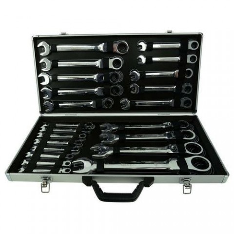 Sada ráčnových klíčů s kloubem uložených v přenosném odolném kufru. Sada obsahuje 22 klíčů ve velikostech 6-32 mm. Obsah balení: 6 mm, 7 mm, 8 mm, 9 mm, 10 mm, 11 mm, 12 mm, 13 mm, 14 mm, 15 mm, 16 mm, 17 mm, 18 mm, 19 mm, 20 mm, 21mm, 22 mm, 23 mm, 24 mm, 27mm, 30 mm, 32 mm.Sada ráčnových klíčů s kloubem, 22ks, 6-32mm GEKO