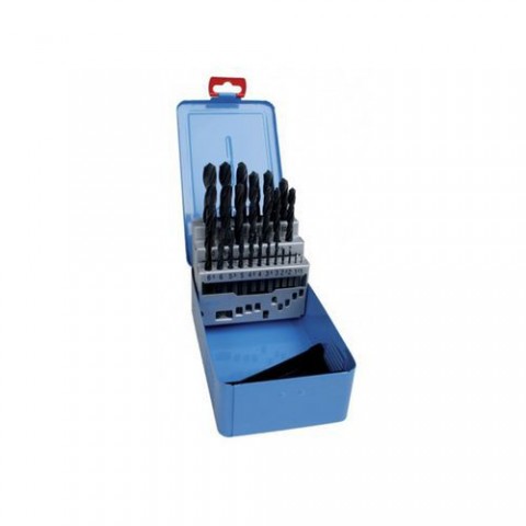Sada pětadvaceti vrtáků do kovu v uzavíratelné krabičce.Sada vrtáků do kovu, 25 ks