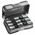 Sada obsahuje: 1 x 1/4" ráčna s otočnou rukojetí: R.360. 10 x 1/4" šestihroté nástrčné hlavice v palcích: R. 7/32" – 1/4" – 9/32" – 5/16" – 11/32" – 3/8" – 13/32" – 7/16" – 1/2" – 9/16". 2 x 1/4" standardní nástavce: L 55 mm (R.209) – L 100 m (R.210). 1 x 1/4" univerzální kloub: R.240A. 1 x 1/4" krátká rukojeť šroubováku: R.236C. 1 x 1/4" zásuvka s držákem bitů se standardním zajišťovacím kolíkem: R.235. 1 x 1/4" šestihrotý nástrčný bit – 1/4" čtyřhran: ECR. 21 x bity řady 1 – pohon 1/4"/6,35 mm – D 25 mm: - ES.T pro šrouby s drážkovanou hlavou: 4,5 – 6,5 – 8 mm. - EP.T pro šrouby Philips: PH1 – PH2 – PH3. - ED.T pro šrouby Posidriv: PZ1 – PZ2 – PZ3. - EH. pro 6bodové šrouby se zápustnou hlavou: 1/4" – 1/8" – 3/16" – 5/32" – 7/32". - EXR. pro šrouby Resistorx: TT10 – TT15 – TT20 – TT25 – TT27 – TT30 – TT40. Prázdný kufr: BV.RNANO-U. Hmotnost: 0,900 kg.Sada šestihranných nástrčných klíčů 1/4" a bitů, 60 ks