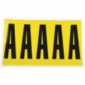 Černá písmena na žlutém podkladu vyrobené z vinylu jsou dodávány v osmi různých velikostech. Šestadvacet různých písmen A - Z, bez diakritiky, jsou vysoce viditelné a mají jednoduchou aplikaci. Při sejmutí nezanechávají stopy. Balení obsahuje 26 archů, každý s počtem etiket měnícím se podle velikost etikety. Počet etiket v archu: 1 - 168.Samolepicí písmena