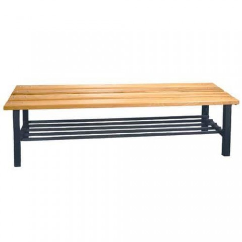 Šatní lavička vhodná do školních zařízení, wellness a fitness šaten aj. Sedák je vyrobený ze 4 lakovaných bukových latí 100 x 8 x 3 cm. Odnímatelná roštová police vhodná pro odkládaní bot. Pevná kovová konstrukce vyrobená z jeklových profilů 40 x 40 x 2 mm. Povrchová úprava polyesterovým vypalovaným práškovým lakem RAL 7016.Šatní lavice LA24 s roštem, 100 x 43 x 39 cm