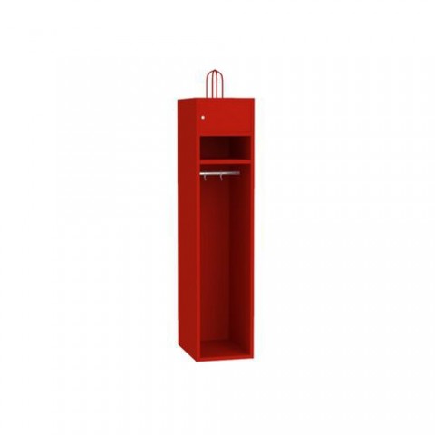 Svařovaná šatní skříň pro hasiče s uzamykatelnou schránkou na osobní věci. Tloušťka ocelového plechu konstrukce v rozmezí 1 - 1,5 mm. Maximální odvětrávání vlhkosti díky konstrukci bez dveří. Perforované dno zajišťuje odtok kapající vody z oděvů. Schránka s cylindrickým zámkem. Praktický držák na přilbu. Užitečné rozměry schránky v x š x h - 349 x 349 x 530 mm, užitečné rozměry úložného prostoru v x š x h - 150 x 349 x 549 mm.Šatní skříň pro hasiče, 1 oddíl