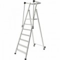 Mobilní schůdky s šesti stupni a plastovým držákem na nářadí. Bezpečnostní zábradlí podél schůdků s plastovými koncovkami. Lehkou manipulaci zajišťují dvě kolečka a madla. Příčky mají šíři 10 cm, což umožňuje pohodlný a bezpečný došlap.Pojízdné hliníkové schůdky Facal s držákem, 6 stupňů