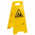 Skládací výstražná cedule s oboustranným textem Pozor! Kluzká podlaha v češtině a angličtině. Vhodná do prostředí s vysokou koncentrací lidí. Snižuje riziko uklouznutí a poranění.Přenosná výstražná tabule ČJ/AJ - Pozor! Kluzká podlaha