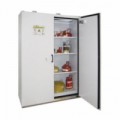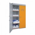 Pro bezpečné a předpisové skladování agresivních i hořlavých látek (v protipožárním oddíle) na pracovištích podle EN 14470-1 a TRGS 510 s požární odolností 30 minut. Konstrukce skříně ze speciálního materiálu B1 v barvě šedé RAL 7035, s dveřmi v šedé RAL 7035 (416048) a žluté RAL 1007 (416049). Samostatně uzamykatelné oddíly cylindrickým zámkem pro skladování různých typů kapalin. Provoz dle TRGS 510 (schválené použití i bez napojení na odsávání vzduchu). Přípojka na odvětrávací systém DN 80 v horní části skříně. Výškově nastavitelné police v rastru 32 mm. Značení podle EN 14470-1 / TRGS 510, uzemnění ve shodě s TRBS 2153. Možnost vyrovnání drobných nerovností podlahy rektifikačními šrouby.Bezpečnostní skříně na agresivní látky i hořlaviny KOMBILAB StoreLAB TYP 30, 30 minut, 4 police