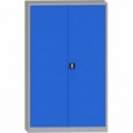 Svařovaná dvoudvéřová skříň v šedo-modrém barevném provedení. Součástí jsou 4 výškově stavitelné police, každá z nich disponuje nosností 100 kg. Uzavírání pomocí 3-bodového zámku.Svařovaná kovová dílenská skříň, 195 x 120 x 50 cm, 4 police, nosnost 100 kg/police, šedá/světle modrá