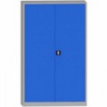 Svařovaná dvoudvéřová skříň v šedo-modrém barevném provedení. Součástí jsou 4 výškově stavitelné police, každá z nich disponuje nosností 100 kg. Uzavírání pomocí 3-bodového zámku.Svařovaná kovová dílenská skříň, 195 x 120 x 60 cm, 4 police, nosnost 100 kg/police, šedá/světle modrá