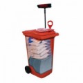 Mobilní plastová popelnice (240 l) obsahuje sadu chemických sorbentů s příslušenstvím pro rychlou likvidaci uniklých kapalin. Popelnice je odolná vůči chemikáliím a UV záření. Vhodné např. do laboratoří, chemických provozů či jiných prostředí kde se manipuluje s chemickými látkami.Mobilní havarijní souprava Absodan, chemická, sorpční kapacita 235 l