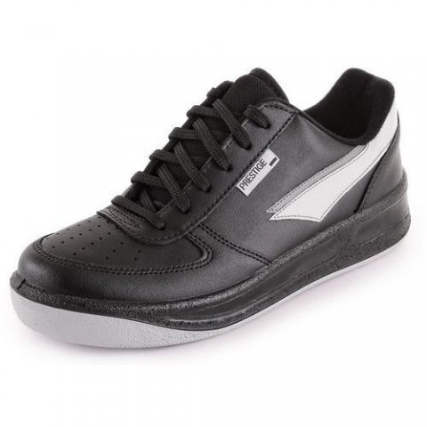 Černá sportovní a pracovní obuv Prestige s protiskluzovou podešví.Sportovní kožené polobotky Prestige, černé