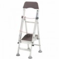 Mobilní skládací hliníkový žebřík s plošinou a třemi stupni. Vhodný do skladů a archivů. Plošina i stupně jsou opatřeny bezpečnostním zábradlím. Součástí jsou dvě kola s automatickou blokací o průměru 125 mm. Rozměry složeného žebříku jsou 236 x 80 x 82 cm. Stupně jsou od sebe vzdáleny 24 cm.Pojízdný skládací hliníkový plošinový žebřík, 3 stupně