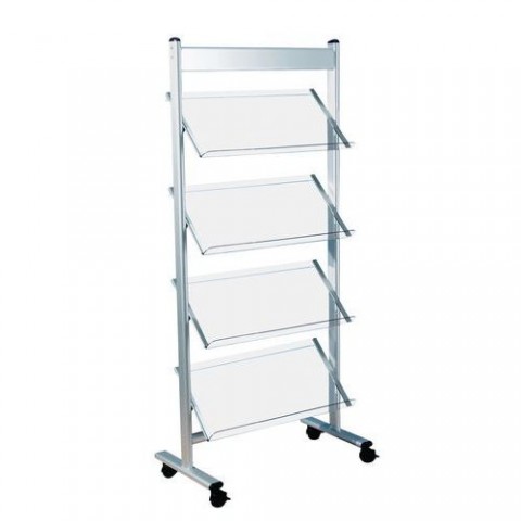 Stojan na brožury s ocelovým rámem. Vybaveno 4 dvojitými otočnými kolečky s brzdou. Police z akrylového skla.Stojany na brožury Ecoline