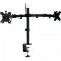 Polohovatelný držák na dva monitory MS006D. Držák je urček k upevnění desky stolu svorkou (svorku lze použít pro desky tloušťky 20 - 60 mm). Připevnit lze také do průchodky na kabely, potřebujete k tomu průchodku o průměru 70 mm. V základně se nachází 2 volné USB porty. Pro snadné nastavení sklonu a výšky monitoru obsahují ramena držáku plynový píst. VESA držák 75 x 75 mm, 100 x 100 mm. Vhodný pro monitory velikosti 17" - 32". Nastavení sklonu v rozmězí -85° až 15 °.Stolní držák na 2 obrazovky MS006D, černá
