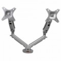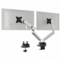 Dvojité upínací rameno pro monitor s flexibilní hlavou otočnou o 360°. Individuální nastavení každého ramene. Pohodlné použití s plynovou lahví. Speciální provedení pro správu kabelů. Velmi robustní s litým hliníkovým materiálem.Dvojité rameno Desq s plynovou pružinou