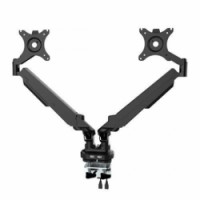 Polohovatelný držák na dva monitory MS006D. Držák je urček k upevnění desky stolu svorkou (svorku lze použít pro desky tloušťky 20 - 60 mm). Připevnit lze také do průchodky na kabely, potřebujete k tomu průchodku o průměru 70 mm. V základně se nachází 2 volné USB porty. Pro snadné nastavení sklonu a výšky monitoru obsahují ramena držáku plynový píst. VESA držák 75 x 75 mm, 100 x 100 mm. Vhodný pro monitory velikosti 17" - 32". Nastavení sklonu v rozmězí -85° až 15 °.Stolní držák na 2 obrazovky MS006D, černá